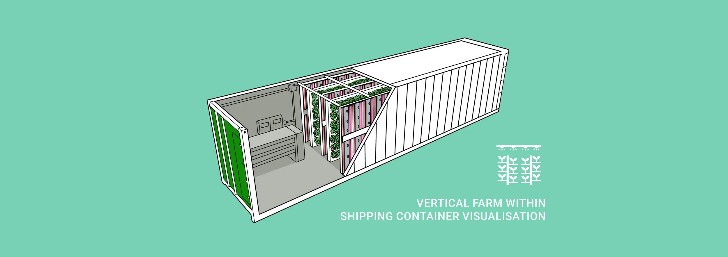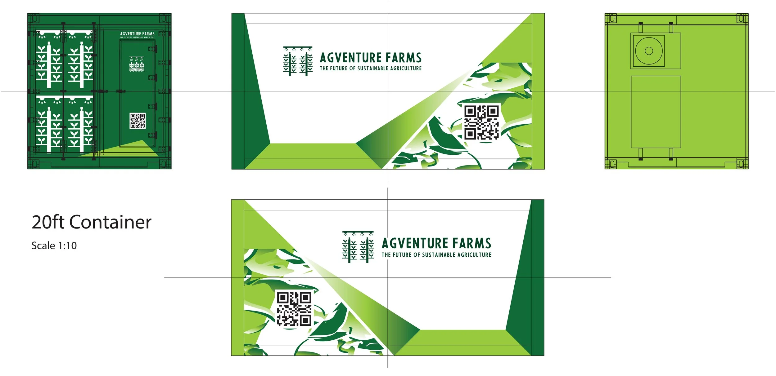 For the farming containers, I designed schematic visualizations and exterior branding that clearly communicated the technology while maintaining brand consistency.