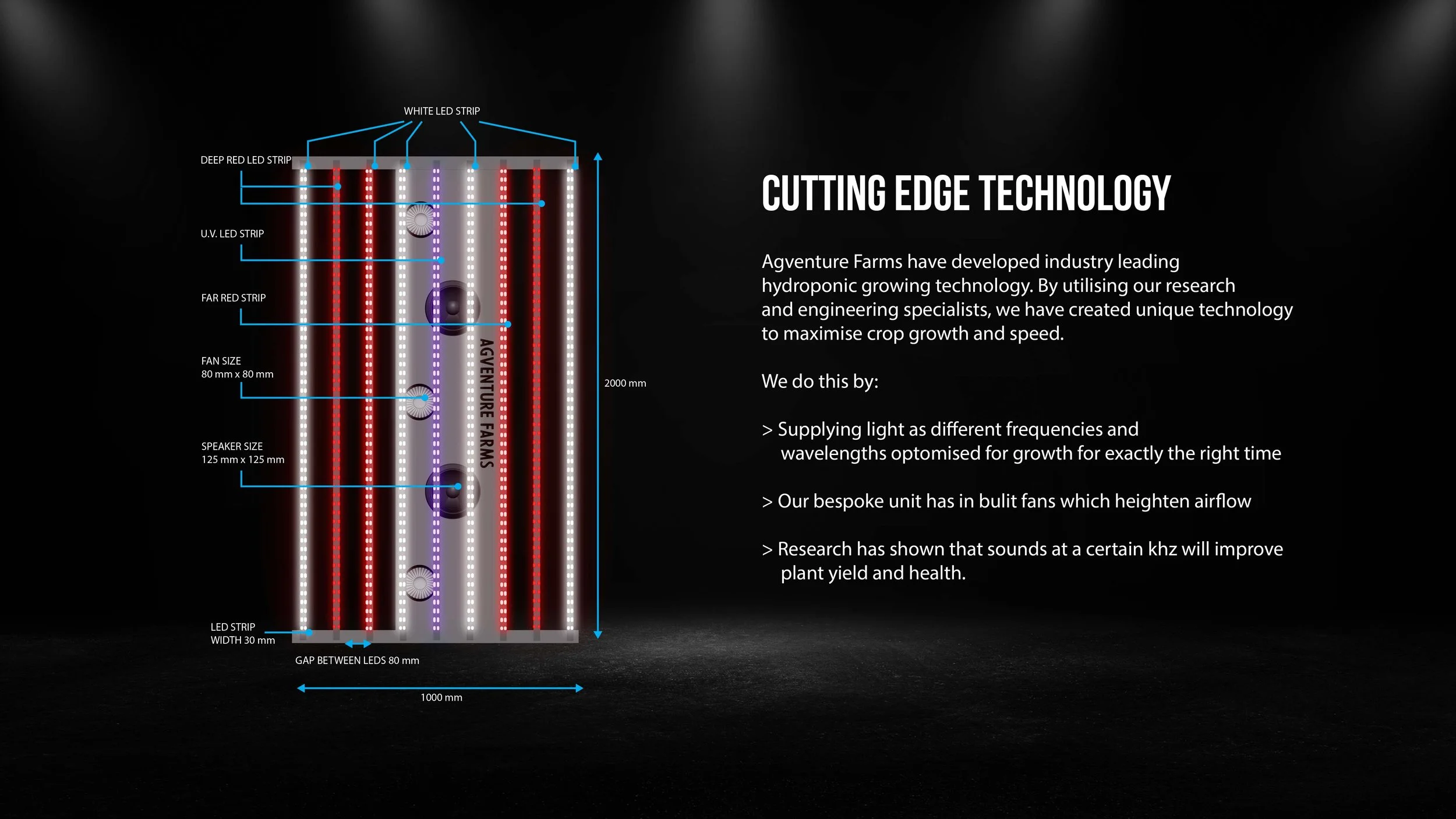 I developed detailed illustrations explaining the specialized lighting systems used for plant growth, translating complex technical information into clear, engaging visuals that could be understood by non-technical audiences.